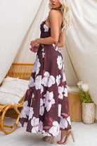 Halter V Neck Back Lace-up Floral Print Maxi Dress