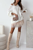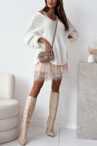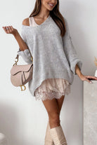 Experience effortless style with this slouchy pullover sweater designed for the modern minimalist. The V-neckline offers a flattering touch of sophistication, while oversized drop shoulders deliver that coveted relaxed vibe perfect for weekend wear or casual office days. Built for versatility, this sweater transitions seamlessly from layering piece to standalone statement. Its generous, comfortable fit allows you to move freely while maintaining an intentionally undone aesthetic that feels authentically you. Whether paired with your favorite jeans or dressed up with tailored pieces, this sweater becomes the foundation of a wardrobe that celebrates comfort and understated elegance.