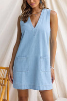 V Neck Sleeveless Pocketed Denim Mini Dress