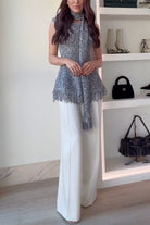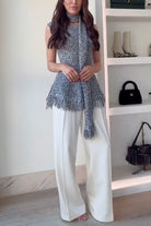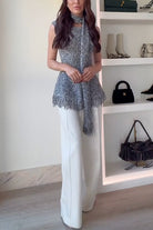 Discover effortless elegance with the Crewneck Sleeveless Fringe Hem Knit Top featuring a stylish matching scarf. Crafted from soft, breathable knit fabric, this top ensures all-day comfort while its sleeveless cut keeps you cool. The fringe hem adds a playful, dynamic touch that enhances your outfit¡¯s charm. The versatile scarf offers multiple styling options, making it a perfect choice for day-to-night wear. Elevate your wardrobe with this chic and adaptable piece designed to highlight your sophisticated style.