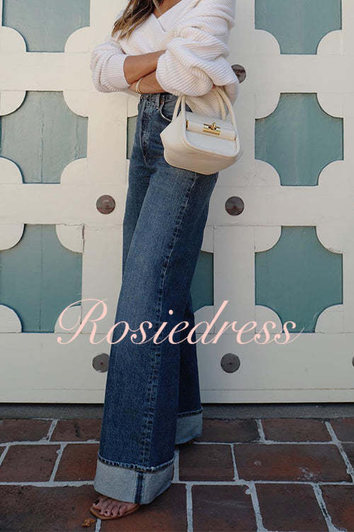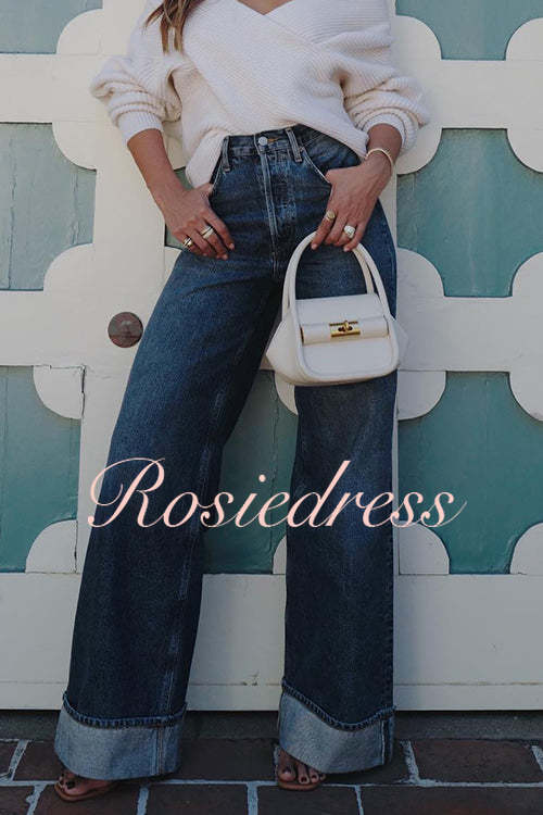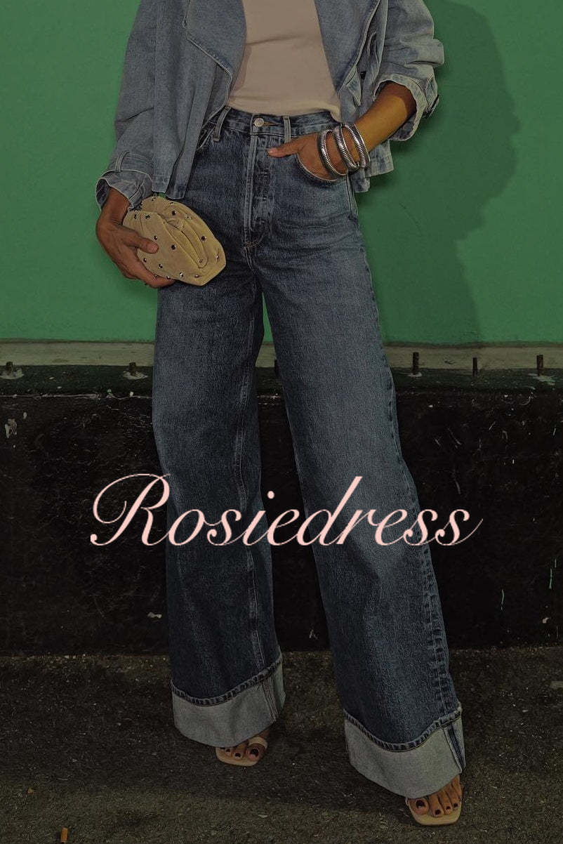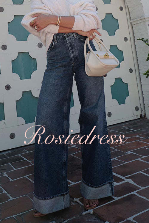 Mid-high Rise Straight Leg Wide Leg Jeans