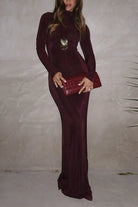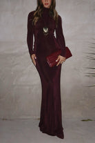 Mockneck Long Sleeves Bodycon Velvet Maxi Dress