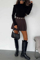 Make a statement with this chic high-rise pleated A-line mini skort that combines timeless sophistication with contemporary flair. The elevated waistline flatters your silhouette while crisp pleats add dimension and visual interest. Designed with integrated shorts underneath, you'll enjoy unrestricted movement and peace of mind all day long. Dress it up with heels and a blazer for professional polish, or keep it casual with sneakers and a tee. This versatile piece is the answer to effortless, confident dressing that transitions seamlessly from work to weekend adventures.