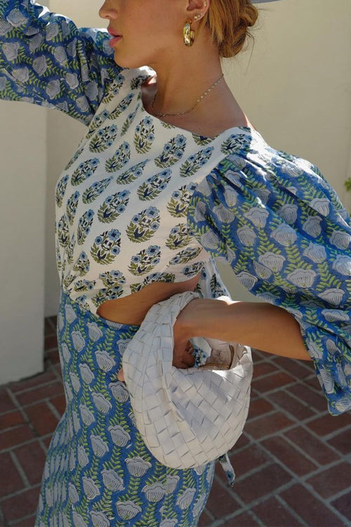 Rosiedress Lantern Sleeves Bow Back Cut Out Printed Midi Dress