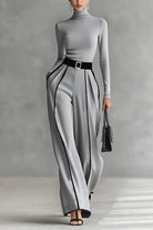 Rosiedress Turtleneck Long Sleeves Top and Color Block Wide Leg Pants Set