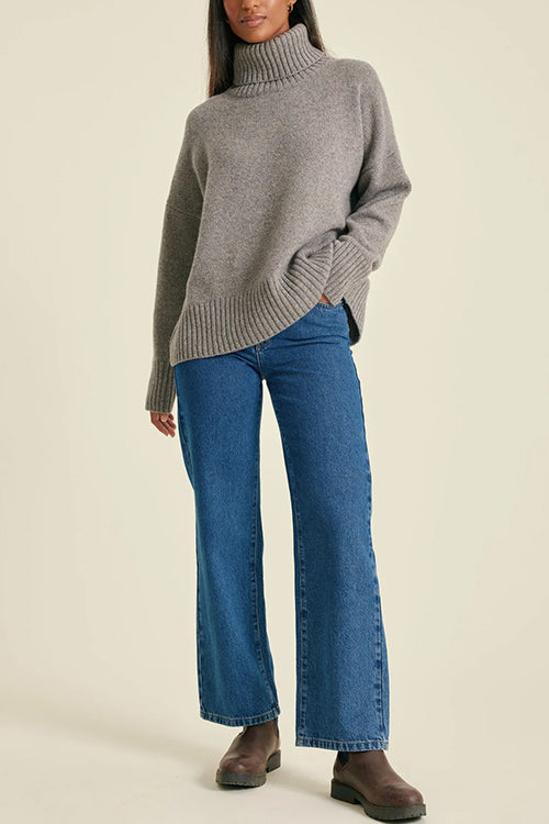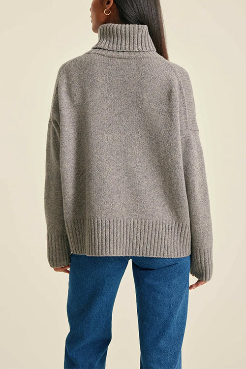 Discover the perfect blend of comfort and style with this turtleneck sweater. Featuring a relaxed drop shoulder cut that offers an on-trend silhouette, this piece delivers effortless sophistication for any occasion. The ribbed hem provides structure and prevents stretching, keeping your sweater looking fresh wear after wear. Whether you're dressing up for brunch or keeping it casual at home, this versatile knit adapts to your lifestyle. The cozy turtleneck keeps you warm while maintaining a sleek appearance that works with virtually any outfit in your closet.