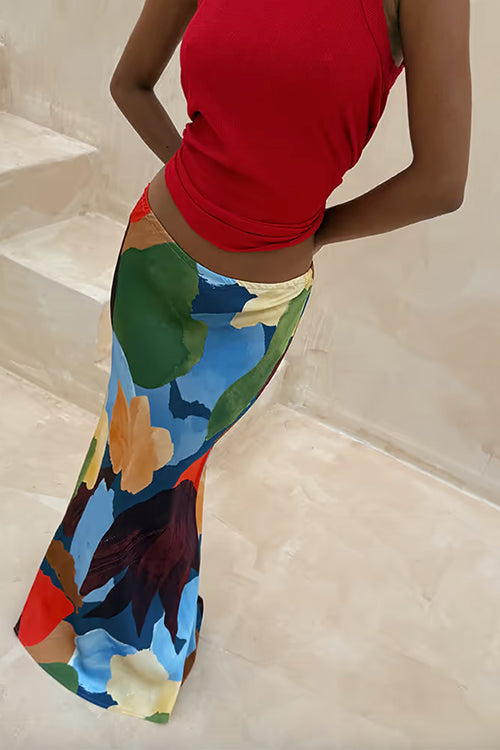 Rosiedress Elastic Waist Abstract Print Maxi Skirt