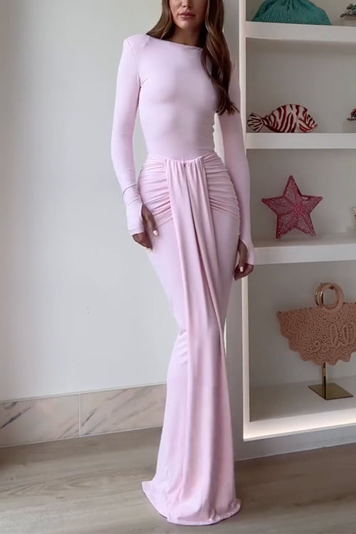 Long Sleeves Draped Front Bodycon Maxi Dress