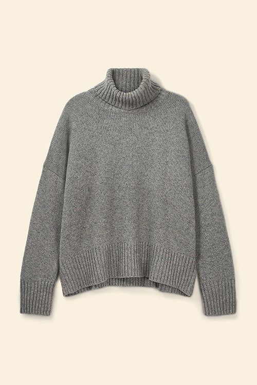 Turtleneck Drop Shoulder Ribbed Hem Casual Sweater