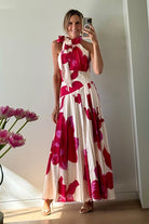 Make a lasting impression in this exquisite sleeveless maxi dress, designed for those who refuse to compromise on style. The enchanting floral print captures nature's beauty while the meticulously pleated fabric creates an elegant drape that flatters every figure. An eye-catching bow neckline adds a touch of refined sophistication, instantly elevating your presence at any event. Whether you're attending a wedding, garden soir¨¦e, or special celebration, this dress delivers the perfect balance of comfort and glamour. The generous maxi length provides effortless movement and confidence, making it a versatile investment piece that will become a cherished favorite in your collection.