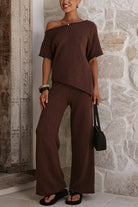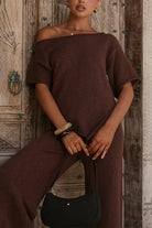 Chic Asymmetrical Shoulder Side Slit Knit Top