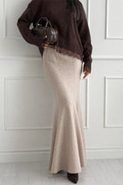Experience the allure of this stunning high-rise maxi mermaid skirt, engineered to showcase your silhouette with grace and confidence. The fitted bodice transitions into a dramatic flared hem, creating an enchanting mermaid effect that turns heads at any formal occasion. With its elevated high-rise design, this skirt flat