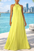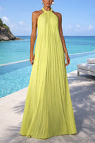 Halter Neck Open Back Pleated Maxi Dress