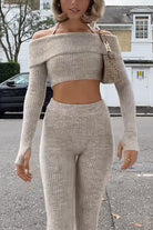 Make a statement with this contemporary off-shoulder crop top featuring long sleeves and a textured ribbed knit construction. The bardot neckline creates an instantly elegant aesthetic while the fitted design accentuates your natural curves. Crafted for versatility, this piece works beautifully as a standalone top or layered under jackets and blazers. The ribbed fabric offers gentle stretch and structure, ensuring all-day comfort without compromising on style. Whether you're dressing up for dinner or keeping it casual, this wardrobe essential delivers effortless sophistication that complements any occasion.
