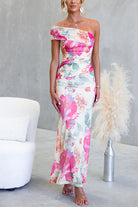 Experience timeless allure in this exquisite one-shoulder floral print maxi dress. The strategically ruched bodycon design sculpts and enhances your natural curves, creating an undeniably flattering silhouette. Lush floral patterns infuse romance and visual interest, while the single-shoulder neckline delivers modern sophistication with an edge. Perfect for holiday parties, formal dinners, and unforgettable celebrations, this dress ensures you'll radiate confidence and grace. The flowing maxi length provides elegant movement and comfort, making it an investment piece that transitions beautifully from season to season. Embrace your elegance and make an unforgettable impression.