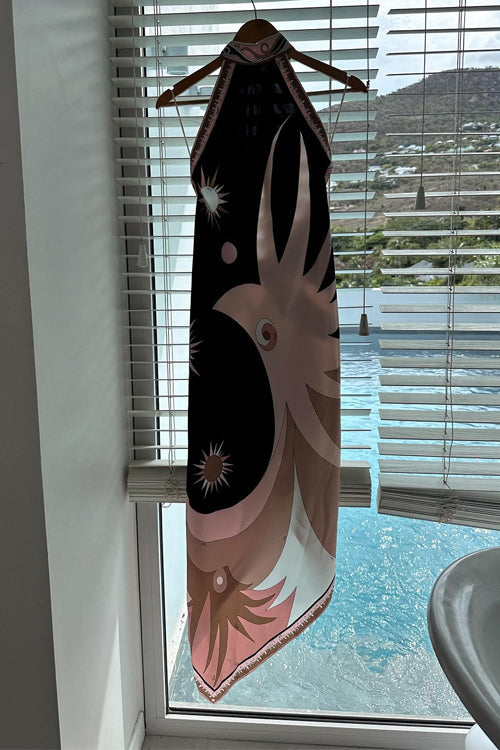 Rosiedress Halter Neck Open Back Asymmetric Hem Printed Satin Midi Dress