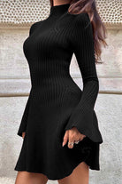 Rosiedress High Neck Long Sleeves Ribbed Knit Mini Sweater Dress
