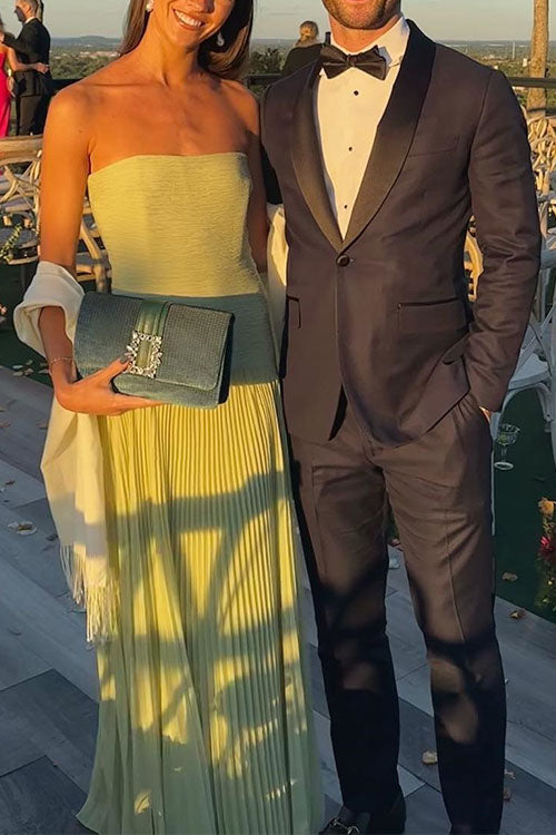 Rosiedress Strapless Tube Patchwork Pleated Maxi Dress