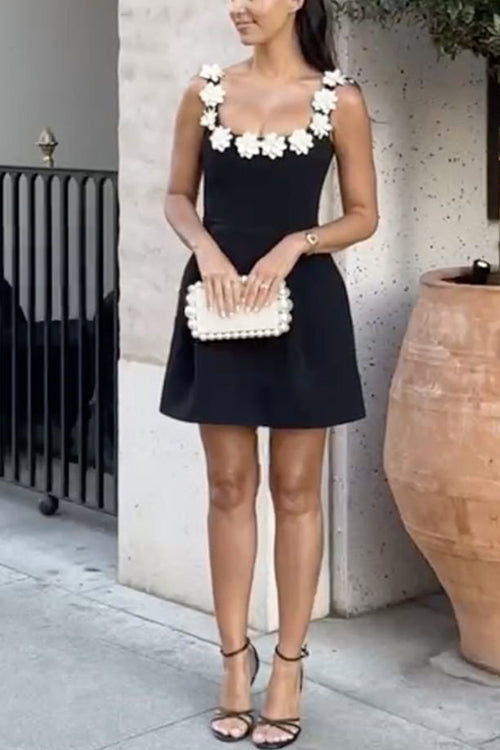 Rosiedress Strappy Floral Neckline Sleeveless Mini Dress