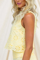 Sleeveless Buttons Detail Floral Lace Hollow Out Top