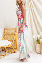 Sleeveless Crop Top High Rise Wide Leg Pants Printed Set