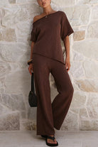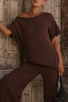 Discover the perfect blend of contemporary style and comfort with this asymmetrical shoulder knit top. The daring off-shoulder cut showcases a modern aesthetic that instantly elevates any outfit, while premium knit fabric provides a soft, breathable feel against your skin. Short sleeves offer practical coverage without compromising on trend-forward appeal. Whether you're heading to brunch, a night out, or the office, this versatile piece adapts effortlessly to your lifestyle. The unique asymmetrical design ensures you'll stand out from the crowd while maintaining an understated elegance. Invest in a top that delivers both confidence and comfort.