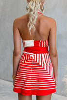 Halter Cowl Neck Bow Waist Striped Satin Mini Dress