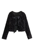• This long-sleeved sequin top is your secret weapon for creating unforgettable moments. Adorned with intricate bow details and radiant sequin embellishments, it captures light beautifully and commands attention wherever you go. The extended sleeves offer elegant coverage while maintaining that show-stopping sparkle you crave. Whether you're dressing up for a night out or adding glamour to your everyday rotation, this top delivers versatility without compromising on style. Pair it with your favorite bottoms and watch as compliments pour in¡ªthis is the piece that transforms good outfits into extraordinary ones.