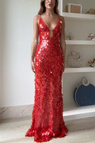 Make a statement in this stunning V-neck sequin bodycon maxi dress. The daring cutout detail at the neckline adds modern sophistication, while all-over sequins catch the light with every movement. The fitted silhouette hugs your curves beautifully, creating an elegant, elongated line perfect for evening events and celebrations. Adjustable cami straps ensure a comfortable, customized fit. Whether you're heading to a party, gala, or special occasion, this show-stopping dress delivers glamour and confidence in one unforgettable package.