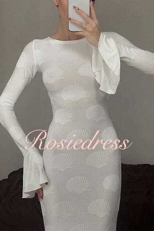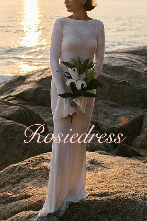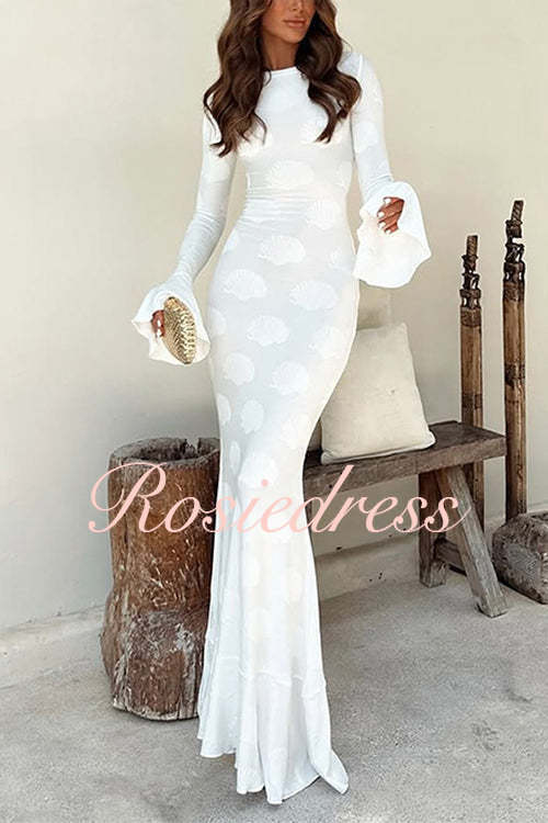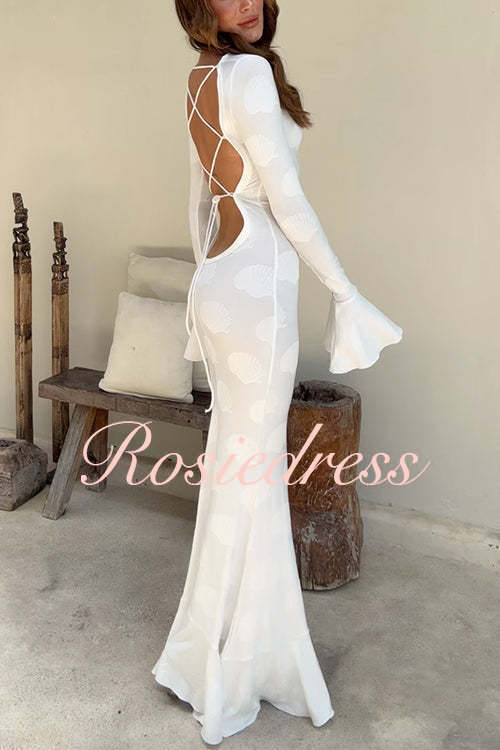 Rosiedress Bell Long Sleeves Backless Lace-up Shell Print Maxi Dress